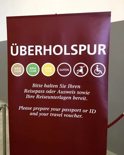 Nach Ankunft am Schiff muss man sich an einem der vielen Counter einfinden um seine Daten überprüfen zu lassen. Dieses erfolgt unter Vorlage der Reisedokumente. Ebenso wird von jedem Gast ein Foto angefertigt, welches zur Identifizierung gilt. Nach dieser kurzen Formalität bekommt man am nächsten Counter auch schon seine Bordkarte, welche wie ein Personalausweis an Bord funktioniert.